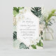 Das geometrische, tropische Geflecht mit weißem Blumenmotiv. Der Text und die Farben können personalisiert sein, um Ihrem Hochzeitstil zu entsprechen.