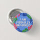 Mit diesem botanischen Abzeichen von JessicaAmber kennen gelassen Menschen Ihre besonderen Bedürfnisse! Der Slogan "Ich bin sehbehindert" in einem kühnen Schriftart, umgeben von tropischen Blätter, auf blauem Hintergrund. Sie können den Text nach Bedarf bearbeiten. ⭐ Für weitere nützliche Blindheitszubehör besuchen Sie mein Geschäft Zazzle.com/JessicaAmberArtist ⭐ Für benutzerdefinierte Bestellungen, schreiben Sie mir auf Zazzle