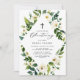 Weiße, blumengeschmückte Einladung zum Taufen. Es verfügt über einen rautenfarbenen, blühenden Rahmen aus weißen Blume, grünem Blattwerk und Kreuz. Diese Blumeneinladung eignet sich perfekt für Winter- und Frühlingstauftritte. Personalisieren Sie Ihre persönlichen Daten, indem Sie Ihre eigenen Daten hinzufügen.