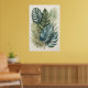Dieses farbenfrohe Design ist ein Aquarellstil aus einem Bündel tropischer Blätter. Palm und Monstera. Die Farben sind Grüntöne. Das Seitenverhältnis beträgt 2:3. Es wurde als 24"×36", 16"x24" oder 20"×30" gedruckt