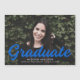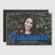 Einfache und stilvolle Ankündigungsmagnet mit dem waagerechten Foto des Absolventen mit "Graduate" in einem fett-blauen Drehbuch. Personalisieren Sie die Ankündigung des Foto-Abschlusses, indem Sie den Namen des Absolventen, den Schulnamen und das Abschluss Jahr.