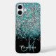 Blau, aquamarin und silber Glitzer, personalisiert mit Ihrem Namen und Monogramm. Gehäuse für Mobiltelefone.