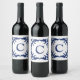 Blau-Blau-Scroll-Monogramm Weinetikett