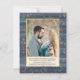 Dieses Design zeigt die Darstellung der Aquarellblau-goldenen Effekt-Rose und goldenen Ton geometrischen Rahmen. Rechts oben - goldener Effekt Konfetti. Und auf der Rückseite - Ihr Foto und Informationen, die Sie gewollt hinzufügen können. Lass deinen Freunden und der Familie, dass du ihre Geschenke an deinem besonderen Tag begrüßen würdest.