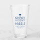 Moderne Typografie-Gestaltung in Blau und Weiß, große personalisierte Geschenke und Gefallen für die Abschlussfeier.
