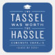 Moderne Typografie-Design "die Tassel war das leichte" in blau-weiß, großartiger personalisierter Aufkleber für Graduiertenparty Gunst oder Geschenk.