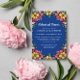 Blau farbenfrohe rosa Blume Probe Abendessen Einladung