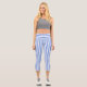 Blau-weiß gestreifte, hochauflösende Capri-Leggings.