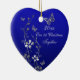 Erinnern Sie sich an Ihren besonderen Tag mit dieser wunderschönen, königsblauen, blumenförmigen Keramik, zuerst Weihnachten zusammen mit Sake-Ornament mit silbergrauen Schmetterlingen und Blume darauf. Sie können den Text anpassen, um zu sagen, was Sie gewollt haben. ****Bitte stellen Sie sicher, dass Ihr Text an der Stelle platziert ist, an der Sie ihn gewollt haben, und NICHT bis zu einem beliebigen Rand, da er wie auf Ihrem Monitor ausgegeben wird. Zazzle wird nichts korrigieren. Es passt auch zu der Hochzeitseinladung unten gezeigt. Wenn Sie Hilfe benötigen, schicken Sie bitte eine E-Mail an niteowlstudio@gmail.com.