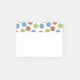 Dieses Post-It-Notizblock hat ein geometrisches Design aus blauen, grünen und braunen Punkten.
