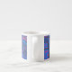 Eine stilvolle Espresso Coffee Tasse mit einem elektrisch blauen und magentafarbenen abstrakten Muster, aus einem Siebdruck von Judy Adamson.