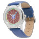 Kinderuhr aus Edelstahl mit blauem Lederarmband