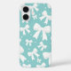 Blau mit Perlen und weißem Bogen Coquette iPhone 16 Hülle