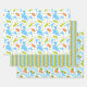 Dieses Set von Packpapieren umfasst drei niedliche Dinosaurier mit koordinierenden Streifen, Punkten und Palmen. Die Dinosaurier sind als freundliche, spielerische Cartoon für Kleinkinder gestaltet. Es gibt einen blauen Brontosaurus mit hellblauen Punkten, einen grünen Tyrannosaurus-Rex mit gelben Punkten und einen orangen Triceratops mit hellblauen Punkten. Das Set besteht aus einem Blatt mit Dinosauriern und Punkten, einem Blatt mit vertikalen Streifen und einem Blatt mit Dinosauriern und Palmen.