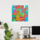 Blau, orange und scharf rosa Groovy Abstrakt Retro Poster