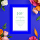 Moderne, vereinfachende Hochzeitseinladung in Akzenten von Blau, Rosa, Orange und Grün, die Ihren Veranstaltungsspezifikationen angepasst werden können.