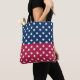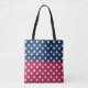 Tote Tag über dem schulterstil modischen Accessoire gedruckt mit Blue and Red Color Block mit White Stars Artwork Design von TheFabricSeal auf Zazzle.com #ZazzleMade Blue und Red halbgeometrischen Halbfarbblock mit weißen Sternen gezeichnet in einem Stil, der von der amerikanischen Flagge inspiriert wird. Perfekt für die Mischung und Abstimmung amerikanischer amerikanischer U.S.A. patriotische nationale US Flagge, Nationalstolz, politische Veranstaltungen in den USA und 4. Im Juli feiern wir die Geburt unseres schönen Landes. Der klassische Jutebeutel mit einem modernen Kniff: Die komplett bedruckbaren Taschen können zu 100% personalisiert werden, das bringt diese Beutel auf einen komplett neues Level. Ihr nächster Shopping-Trip got einfach ein wenig mehr bodenfreundlich und viel stilvoller!