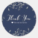 Blau & Silber Botanische Moderne Gastgeschenk Hoch Runder Aufkleber