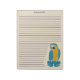 Diese Schreibtischtafel hat Linien, die perfekt für das ordentliche Schreiben Ihrer Briefe sind. In der Ecke ist eine Abbildung eines blauen und gelben Ara mit marineblauen Linien vor cremefarbenem oder beigefarbenem Hintergrund zu sehen. Ihre eigene benutzerdefinierte Nachricht erscheint oben auf jeder Seite.