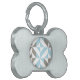 Ein trendiges, abstraktes, geometrisches Würfel in Blau und Silbergrau.