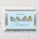 Blau- und SilberDamast mit Teddybär | Babydusche Einladung