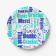 Die Teller des Papiers zeichnen sich durch eine Wortwolke aus, die mit dem mittel- und türkisblauen "Danke" in mehreren Sprachen und einer Vielzahl von Schriften über Weiß geschrieben wurde. Klicken Sie auf "Anpassen", um eine andere Hintergrundfarbe als weiß auszuwählen.