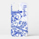 Dekorative abstrakte Blumenkästen in Blau und Weiß. Die Farben des Designs sind königsblau, Maisblume blau und weiß. Eine elegante und hübsche Wahl, um Ihrem iPhone etwas mädchenhaften Stil hinzuzufügen. Personalisieren Sie es mit Ihrem Vornamen.