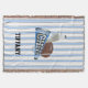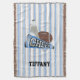 Cheerleader's gezinkte Werftdecke in einem blauen, hellgrauen und weiß gestreiften Muster gemacht. Die Grafik eines Fußballs und zwei Megafone schmücken die Mitte der Decke. Personalisieren Sie den fett gedruckten schwarzen Text, um Ihre Bedürfnisse Anzug. Ideal, um warm behalten, auf den Bleichen, und als Vorwand für Ihr Bett.