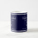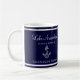 Kaffee Mugs Chic Blau und Weiß mit dem Namen Ihres Sees, dem Namen Ihrer Familie, und Karte Koordinaten. Lakehouse, modern, mit Pinsel, Kartenkoordinaten, Längengrad, Breitengrad,