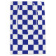 Abstrakte digitale Kunst von blau-weißen Quadraten in einer karierten Formation.