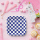 Abstrakte digitale Kunst von blau-weißen Quadraten in einer karierten Formation.