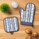 Blau und Weiß, Sashiko-Muster Ofenhandschuh & Topflappen-Set