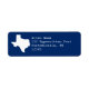 Einfache, weiße Kartenform des Staat von Texas mit einem Adressetikett in Schreibweise für den Schriftart Ihrer Kontaktdaten. Ändern Sie Stil, Größe und Farbe des Schriftartes, um Ihr eigenes Design zu erstellen. Man muss nicht an dem blau-weißen Fahne-Thema festhalten. Sie können auch die Hintergrundfarbe anpassen.