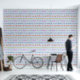 Blau-weiß gestreifter Druck mit farbigen Fischen, Tapete