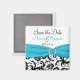 Dieser schwarz-weiße Damast Save the Date Magnet hat ein aqua-blau PRINTED Band und eine PRINTED Diamantschlauchfibel, die perfekt für eine Hochzeit im Aqua- und Schwarz-Design ist.****Wenn Sie die Form und/oder Größe des Magneten ändern, oder wenn Sie die Schriftart oder die Größe des Schriftartes ändern, kann ein Teil des Designs und/oder Textes abgeschnitten werden. Alles wird gedruckt, wie Sie es auf Ihrem Monitor sehen. Ich werde keine Änderungen sehen, die Sie vornehmen, und Zazzle wird nichts korrigieren (Tippfehler, falsche Ausrichtung usw.). Der Text ist alle anpassbar. Wenn Sie Hilfe zu diesem Produkt benötigen, schicken Sie mir bitte eine E-Mail, bevor Sie Ihre Bestellung aufgeben. Wenn Sie weitere passende Artikel benötigen, senden Sie Ihre Anfrage bitte an niteowlstudio@gmail.com