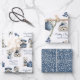 Blau weiß und silber, weißer, festlicher Welpenurl Geschenkpapier Set