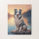 Blau-weiße Border Collie-Hund sitzt an einem schönen See. Viele Haustier- und Landschaftsdesigns in meinen Geschäften. Fügen Sie dieses Design anderen Produkten hinzu. Text hinzufügen.