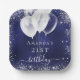 Für eine mädchenhafte und glamouröse 21. Geburtstagsfeier (oder jedes Alter). Marineblau mit eleganten Imitaten, silberne Glitzern und weiße Ballons. Die blaue Farbe ist ungleichmäßig. Personalisieren und fügen Sie einen Namen und Alter 21. Weiße Buchstaben.