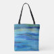 Moderne blaue Tasche mit abstrakten Ozeanwellen, die sich durch dieses abstrakte Acryldesign in aquamarinen, türkisfarbenen, hellen und kobaltblauen Farbtönen bewegen. Tasche sind praktisch für so viele Verwendungszwecke, einschließlich Reisen und Shopping.