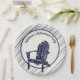 Diese Teller sind bereit, mit Ihrer eigenen, individuellen Nachricht personalisiert zu werden. Sie sind mit diagonalen Streifen in marineblau, Holzkohlegrau und hellblau an einem Muschelboden ausgelegt und mit einem Adirondack-Stuhl aus Holz in Marineblau versehen, was sie perfekt für Outdoor-Ansammlungen oder Party mit entspanntem Rücken macht.