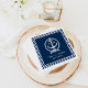 Die Hochzeitsnapkins verfügen über ein modernes und elegantes Mongramm im nautischen Stil, das in einem Bootanker mit einem Seilknotenrahmen mit einem diagonalen Streifen dargestellt ist. Navy Blau und Weiß mit hellgrauem Akzent Farbschema.