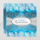 Blaue Aquamarine Spitze und silberne Rahmen Quince Einladung