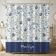 Blaue Aquarell-Wildblumen-Monogramm-Name Duschvorhang