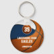 Dieses Basketballteam färbt Schlüsselanhänger mit leicht anpassbarem Spielernamen, und der Maskottchen-Name der Schule und Mannschaft zeigt eine einfache Basketballgrafik mit blauen und grauen Schulfarben auf zwei der Basketballfelder - die Jerseynummer des Spielers liegt auf einem kleinen Basketball - von katz_d_zynes | Weitere Basketball-Mannschaftsfarbenkombinationen in Katzdzynes’ Sammlung "Basketball-Schlüsselanhänger und Rucksäcke für Jungen" >>>> https://www.zazzle.com/collections/119832025911486781