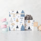 Blaue Bäume Moderner Weihnachtsnachtsname Text Geschenkpapier