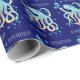 Eleganter Aquarelloktopus mit blauen Blasen Geburtstagsverpackungspapier. Kann Namen und Text anpassen.