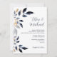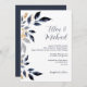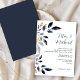 Blaue Blätter mit Goldener Hochzeitseinladung, entworfen mit zarten, fließenden Blätter in den Schattierungen der Dunklen Marine, und Light Blue mit goldenen Highlights. Der Text enthält: Die ersten Namen der Braut und des Bräutigams, zusammen mit ihren Familien, die vollständigen Namen der Braut und des Bräutigams, das Hochzeitdatum, die Uhrzeit, den Namen und die Anschrift des Heiligtums und den Empfang, den sie folgen sollen. Um Ihre persönlichen Daten zu personalisieren, fügen Sie einfach Ihre Daten in unsere einfache Vorlage ein und ersetzen den Beispieltext. Achten Sie darauf, die gesamten Blue Blätter mit Gold Wedding Collection für passende Karten und Accessoires zu sehen.
