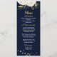 schöne weiße Blume und goldene Blätter elegante marineblaue Hochzeitskarte. Die Einzelheiten des Glitzer werden simuliert