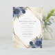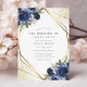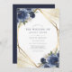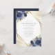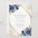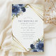 Navy Blue Floral Gold Geometric Modern Wedding Einladung. Schöne und elegante Wintereinladungen mit blauen botanischen Rose . Dieses maßgeschneiderte, moderne Hochzeitsdesign kann leicht mit Ihren eigenen Hochzeitsdetails personalisiert werden.