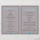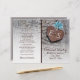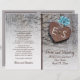 Blaue wilde Blume, metallisch rostetes Herz mit Monogramm auf Holz rustikale Hochzeitsfeier und gefaltetes Party mit einem braunen rostfreiem Metallherz mit Initialen auf verwittertem grauem Holzbrett und drei aqua blauen Blume. Dieses mit Monogramm Blumenmuster-Design ist vollständig anpassbar und ist Teil eines Hochzeitsgeschehens oder einer Hochzeitskollektion, die perfekt für eine Hochzeitsfeier im Sommer oder Herbst ist. Man muss es in der Mitte falten. Wählen Sie nur diesen Papierwert aus, da er sich gut faltet.